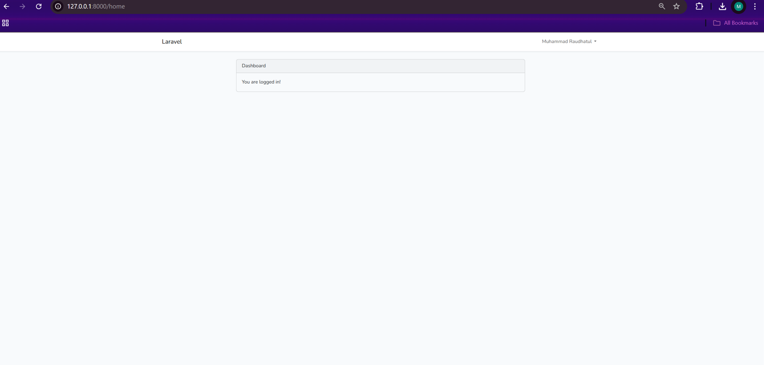 Authentication Laravel secara otomatis mengenerate tampilan dashboard aplikasi, Langkah