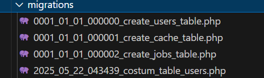 Kemudian jalankan perintah php artisan migrate, jika berhasil maka struktur