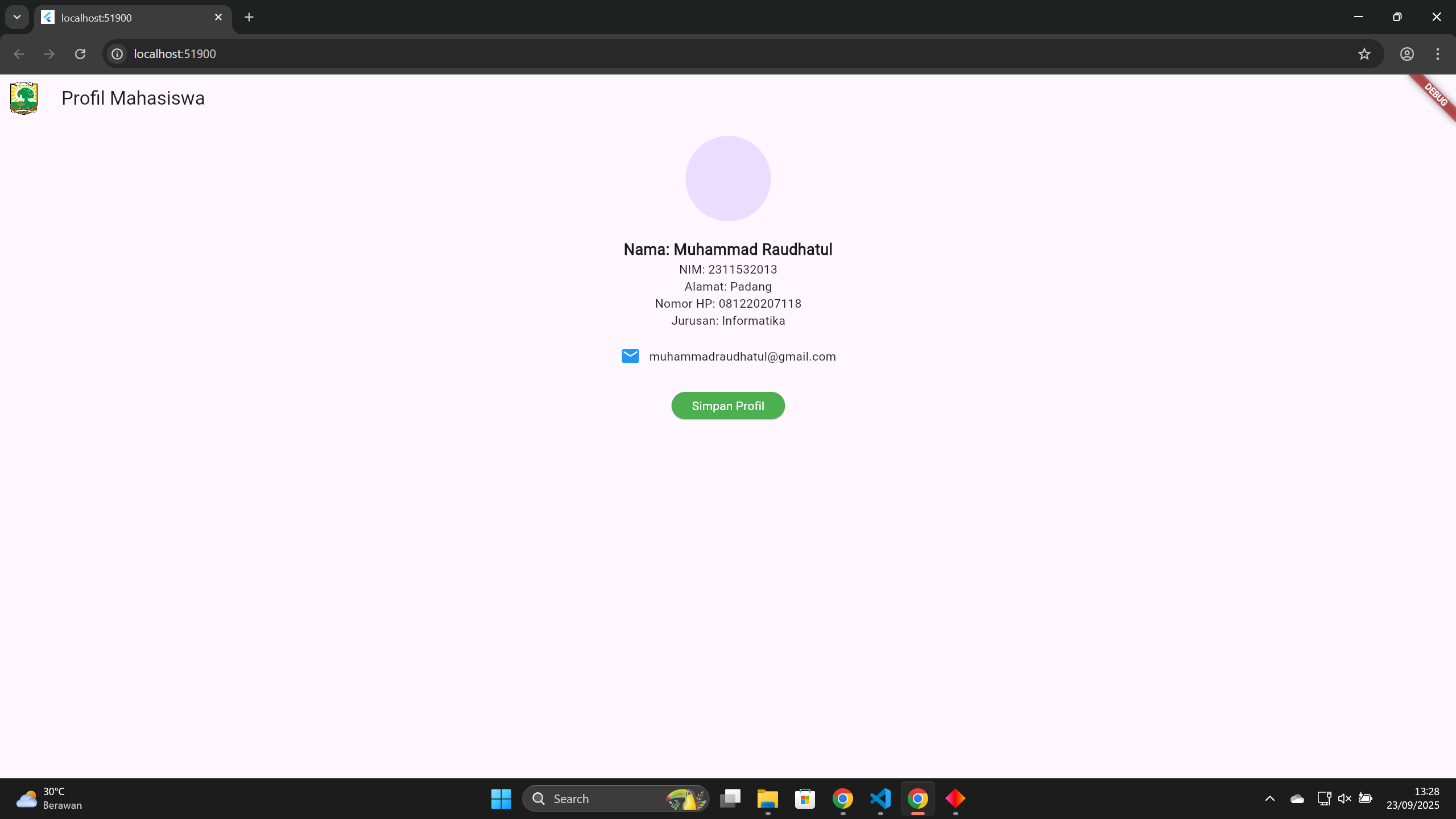 b. Membuat tampilan profil mahasiswa berisi foto, nama, NIM, alamat, nomor HP, dan jurusan