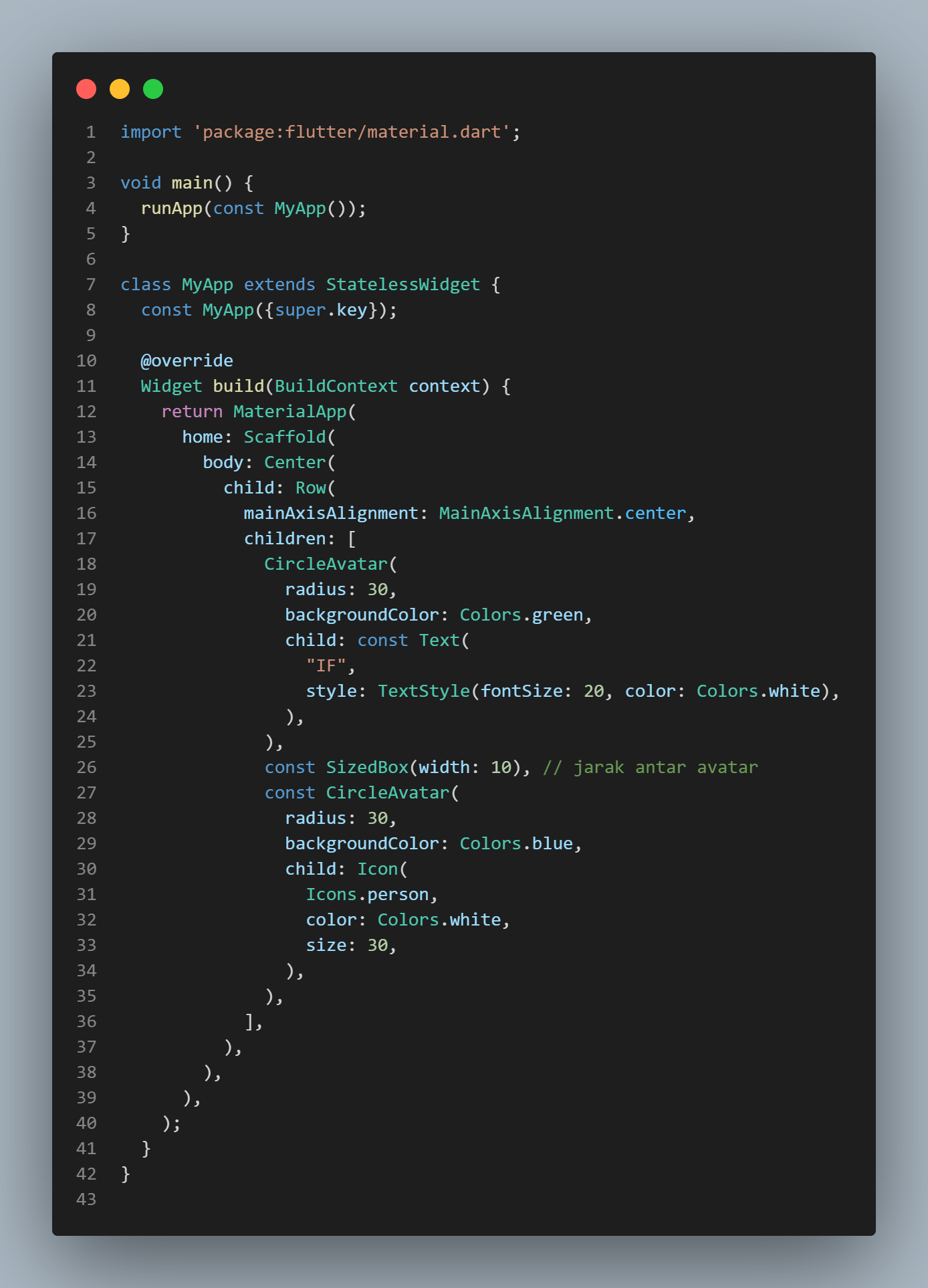 - CircleAvatar → avatar bulat untuk foto profil atau inisial.