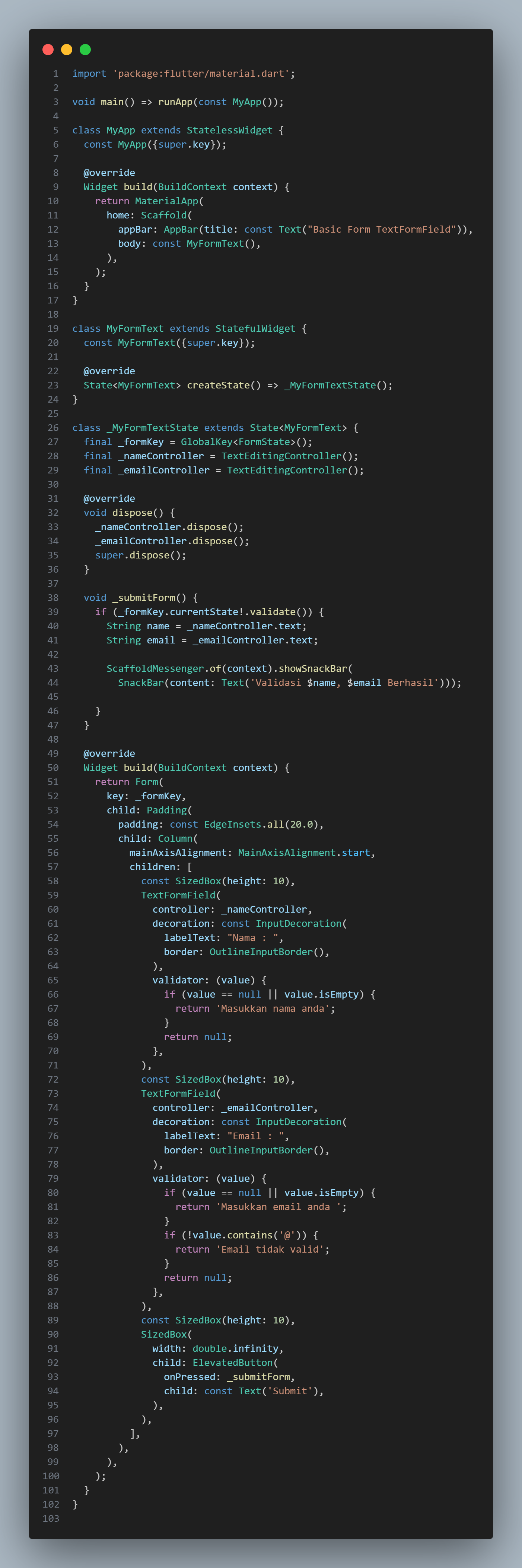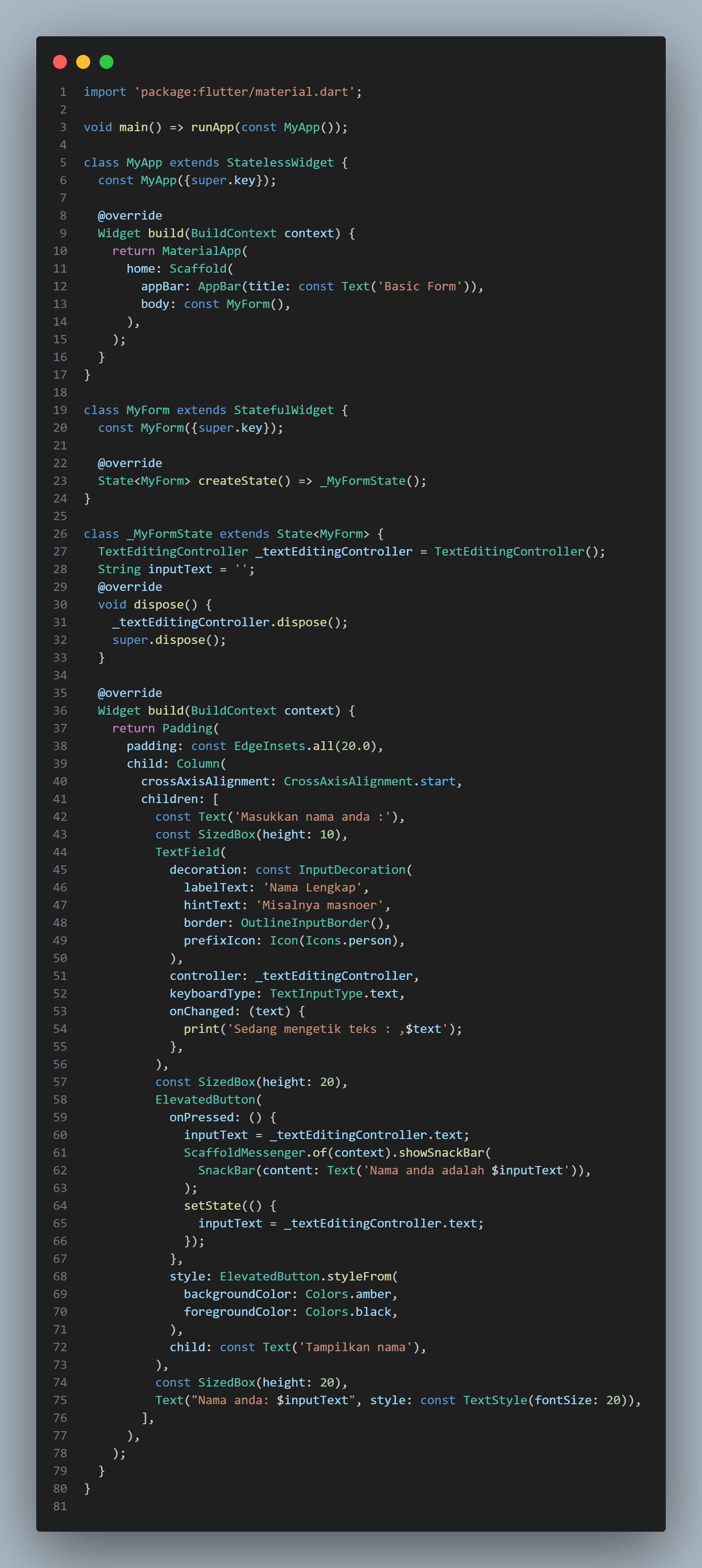 b. Membuat Basic Form dengan TextFormField